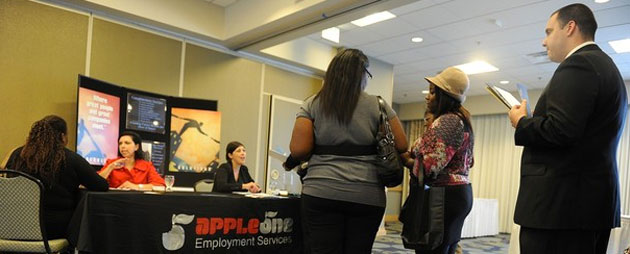 Image from Daylife: Job Seekers waiting to talk to employment agencies.