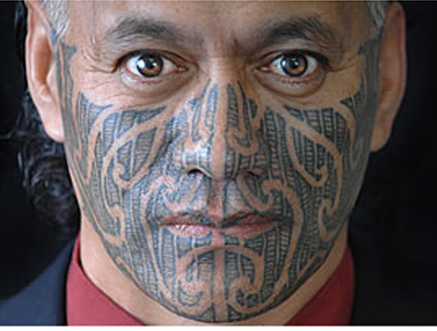 Creator: Professional Speaker Ngahihi O Te Ra Bidois, wearing his manifesto on his face – a Ta Moko or traditional facial decoration of the New Zealand Maori.