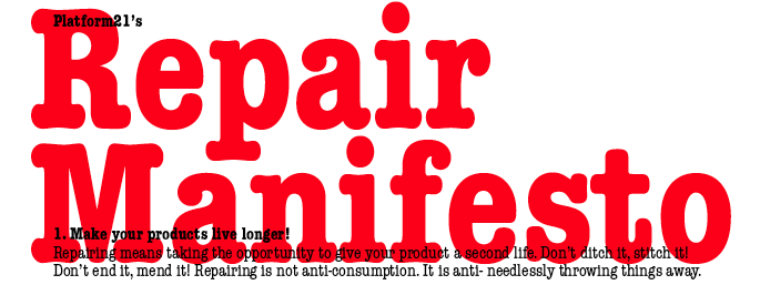 Repairing means taking the opportunity to give your product a second life. Don’t ditch it, stitch it! Don’t end it, mend it! Repairing is not anti-consumption. It is anti- needlessly throwing things away.
